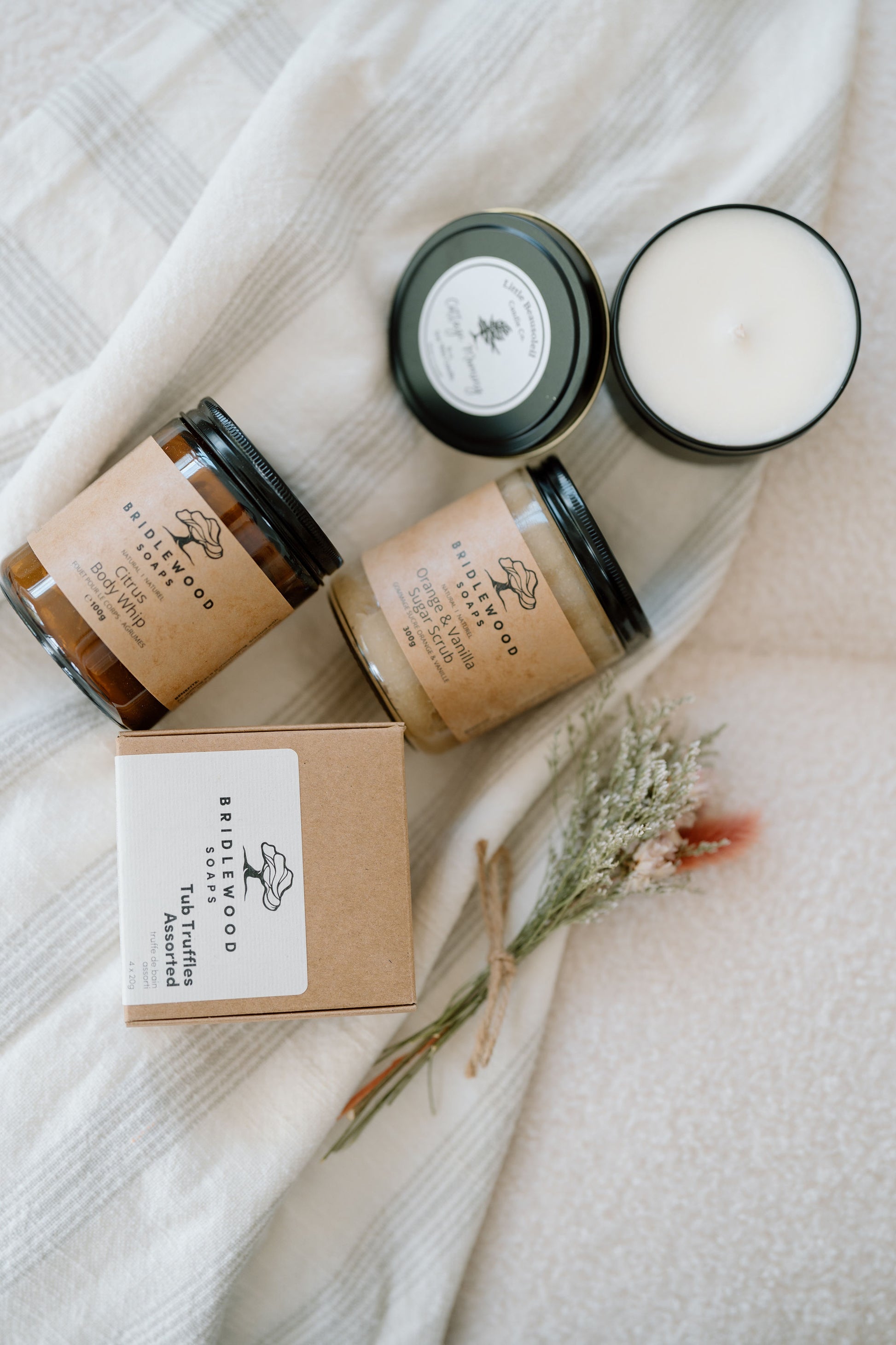 Quiet Luxury is a refined self-care gift for those who value calm, comfort, and elegance. Perfect for a loved one, new mom, busy professional, or anyone in need of a peaceful reset. With soothing tub truffles, a soft candle glow, body whip, scrub, and a Turkish towel, it’s a gentle invitation to slow down and indulge in simple, elevated moments.