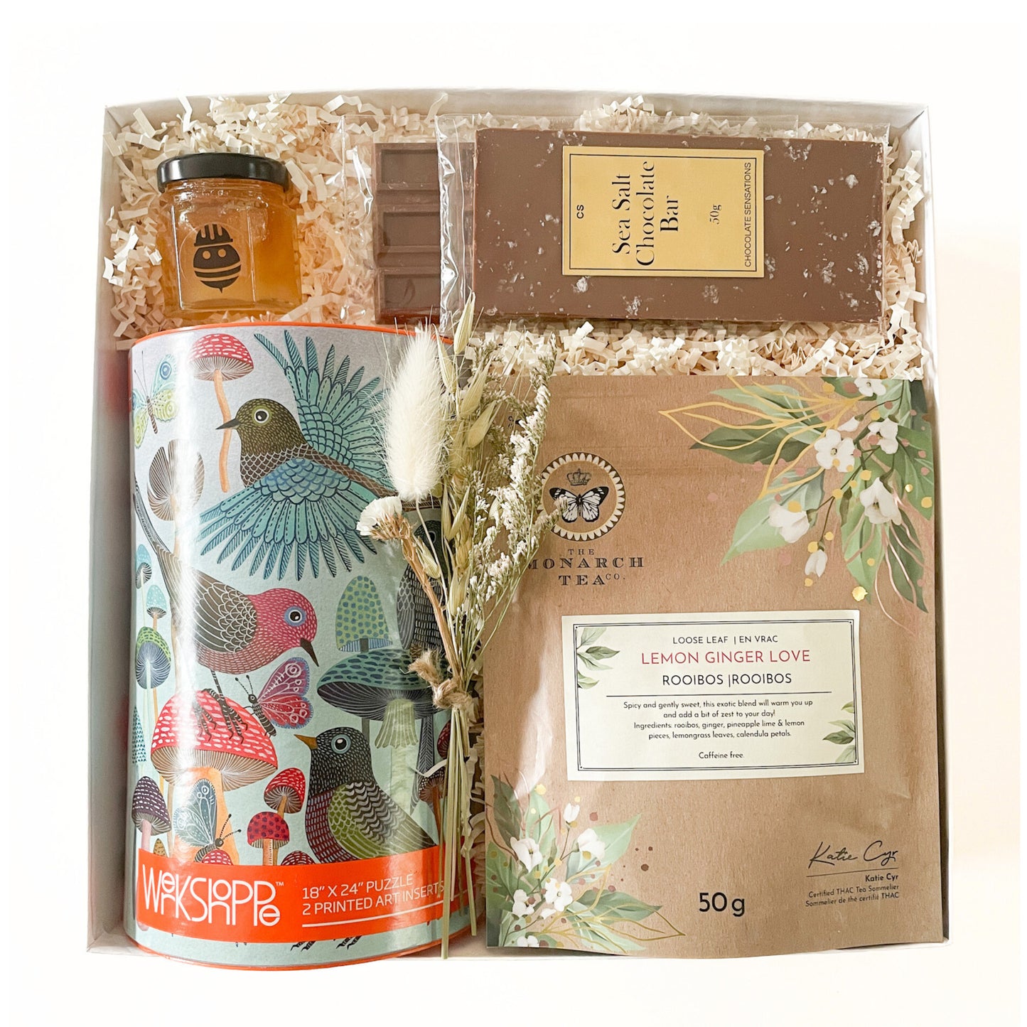 The “Weekend” gift box gives your recipient the opportunity to stay-in and curl up with a puzzle and hot tea. A perfect choice for a client gift, employee gifting, teachers, housewarming or host/hostess gift, thinking of you or a pick-me up gift.